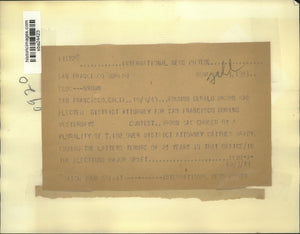Edmund Gerald Brown was elected District Attorney for San Francisco during yesterdays contest. Brown was chosen by a plurality of 7102 over District Attorney Matthew Brady ending the latters tenure of 24 years in that office in the elections major upset.