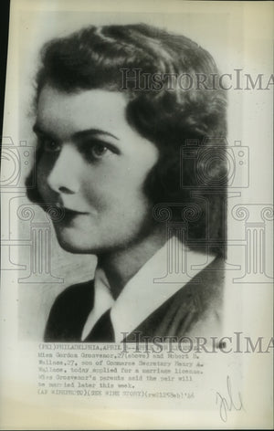 Miss Gordon Grosvenor, 27 (above) and Robert B. Wallace, 27, son of Commerce Secretary Henry A. Wallace, today applied for a marriage license. Miss Grosvenor's parents said the pair will be married later this week.