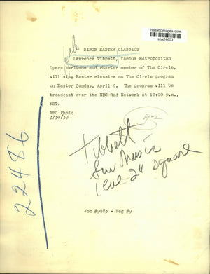 Lawrence Tibbett, famous Metropolitan Opera baritone and charter member of The Circle will sing Easter classics on the Circle program on Easter Sunday, April 9. The program will be broadcast over the NBC Red Network at 10:00 PM EST.