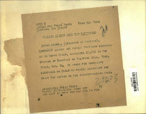 Luigo Longo, Communist leader and former Partisan Commander in Northern Italy, addresses 20,000 in the Stadium of Domitian on Palatine Hill, Rome, Italy, Oct 14. He asked for immediate elections in Italy to foster Democracy and start the nation on the reconstruction road.