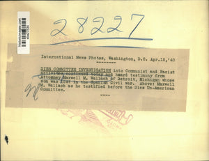 Dies committee investigation into Communist and Fascist activities continued today and heard testimony from attorney Maxwell M Wallach of Detroit Michigan whose son was lost in Spanish Civil war Maxwell Wallach as he testified before Dies Un American committee
