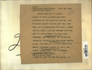 1941 Press Photo Milo Warner & American Legion head to London to study defense