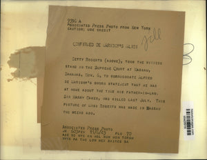 1943 Press Photo Betty Roberts witness at Nassau Bahamas trial of Al De Marigny