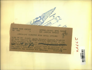 Long Beach, Calif Anita Spencer Tarrant, daughter of Vice Admiral William Tarrant, commander of the Navy scouting force and Lt Charles Anderson USN are shown following colorful military ceremonies which united them in marriage at St Luke's Episcopal church. The bridegroom is attached to the cruiser New Orleans.
