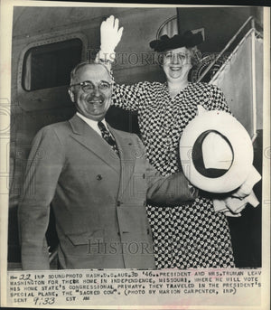 1946 Press Photo Pres. and Mrs. Truman leaving DC for their home in Missouri