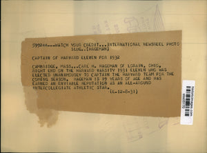 1931 Press Photo Carl H. Hageman Elected Captain of Harvard Eleven for 1932
