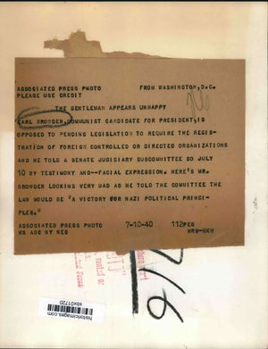 1940 Press Photo Earl Browder Communist candidate for US President - sbx01720