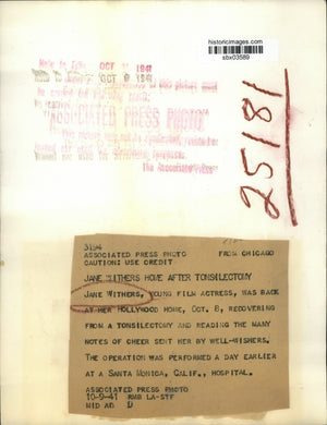 1941 Press Photo Jane Withers recovering from tonsillectomy at home - sbx03589