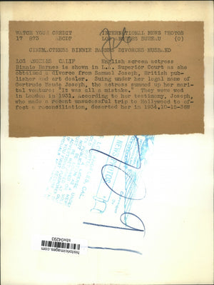 Binnie Barnes in L.A. Superior Court as she obtained a divorce from Samuel Joseph.