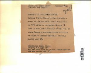 1943 Press Photo Marshal Pietro Badoglio Commander in Chief Italian Army