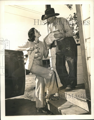 1940 Press Photo Elizabeth Earl in Slack Costume asks for directions - sbx04690