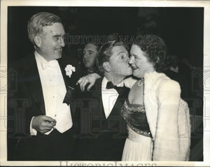 1940 Press Photo actor Mickey Rooney kisses Mrs Charles Edison at DC party