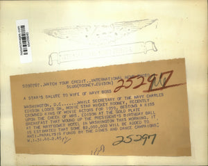 L to R: Secy of Navy Charles Edison, Mickey Rooney, Mrs. Edison at a Anti-Paralysis fund rasier in DC.