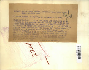 With employers and employees at an impasse in the General Motors Strike, and with an ominous note beginning to intrude on the situation. As evidenced by minor strike disorders in Flint, Michigan, the National Leaders of the C.I.O. put their heads together at a meeting here on Tuesday (Jan. 12). In this picture, John Brophy, Director of the C.I.O., Homer Martin, National President of the United Automobile Workers, and John Lewis, Head of the C.I.O. were pictured as they conferred on the auto strike situation.
