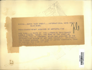 1937 Press Photo Lifesize Renaissance marble figure of Adam, by Tullio Lombardo