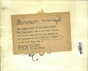 Gen Mark Clark, hero of the North African and Italian campaigns (right) reports to his commander-in-chief, President Truman, at the White House June 1.