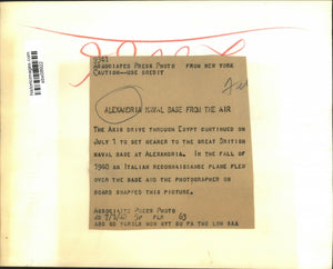 The Axis drive through Egypt continued on July 1 to get nearer to the Great British Naval Base at Alexandria. In the fall of 1940 an Italian reconnaissance plane flew over the base and the photographer on board snapped this picture.
