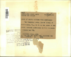 The Homestead hotel (shown above) at Hot Springs, Va., is to be the scene of the United Nations conference on food problems beginning May 18.