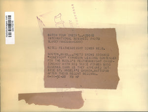 Richard "Honeyboy" Finnegan leading contender for the World's Featherweight Championship with his bride former Ms. Eugenia Carr as they appeared outside St. Angela's Church Mattapan after their wedding.
