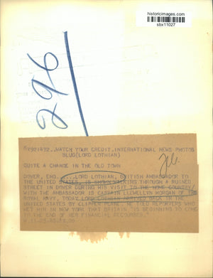 Lord Lothian British Ambassador to the United States is shown walking through a ruined Street in Dover during his visit to the home country with Ambassador is Capt. Llewellyn Morgan of the Royal Navy, Lord Lothian arrived back in the United State by Clipper Plane. He told reporters who met him in New York that Britain is beginning to come to the end of her financial recourse.