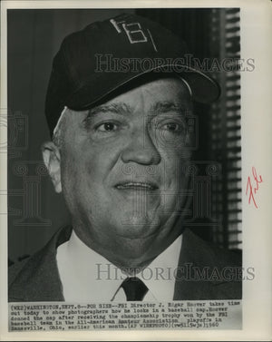 1960 Press Photo FBI Director J. Edgar Hoover ins a baseball Cap