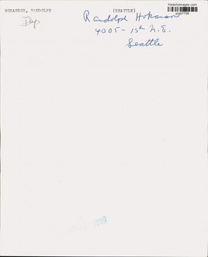 Randolph Hokanson, 4005 - 15th N.E., Seattle, Washington