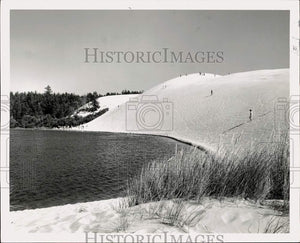 1975 Press Photo People at sand dunes by lake in Cleawox Lake, Oregon