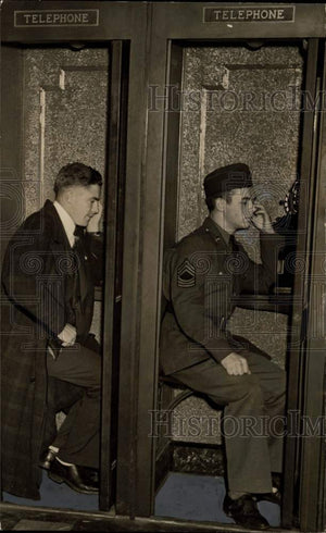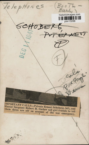 Schoberg, Private Ernest. Important calls - Private Ernest Schoberg, left, and Master Sergeant Robert H. Carlaw call girlfriends to tell them dates are off on account of the war emergency.