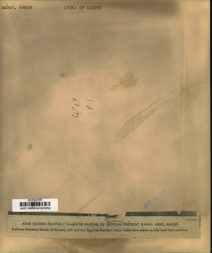 Sadat, Anwar (Pres of Egypt). Sudanese President Gaafar El Numeiry, left, and Egyptian President Anwar Sadat are unable to hold back their emotion as they tearfully lament the loss of Gamal Abdel Nasser. Numeiry was the first chief of state to arrive Tuesday for Nasser's funeral to be held Thursday.