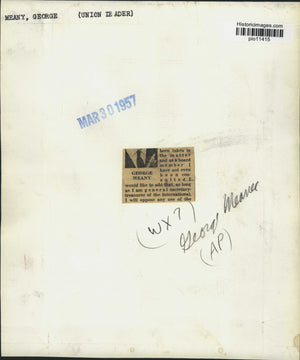 1957 Press Photo George Meany, labor leader, at press conference - pio11415