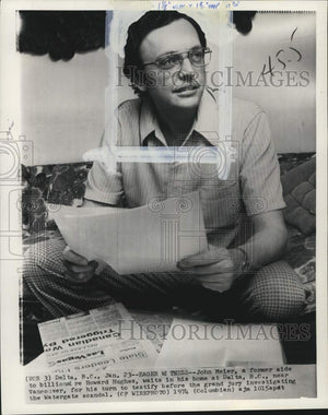 Meier, John (Fmr Howard Hughes aide) - John Meier, a former aide to billionaire Howard Hughes, waits in his home at Delta, British Columbia, near Vancouver, for his turn to testify before the grand jury investigating the Watergate scandal