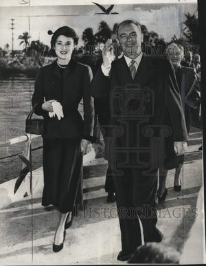1949 Press Photo Mayor William O'Dwyer & bride Sloan Simpson board yacht in FL