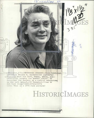 Undergoes surgery - Vice President-designate Nelson A. Rockefeller announced Thursday that his wife Happy, above, was undergoing surgery for beast cancer. He described the surgery as a radical mastectomy in the left breast.