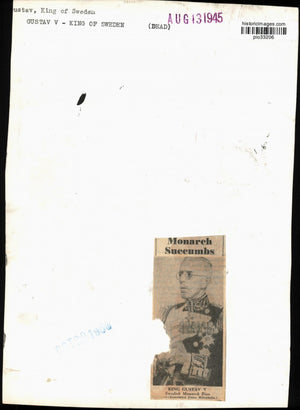 1942 Press Photo King Gustav V of Sweden - pio33206