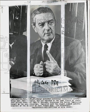 1964 Press Photo Governor John Connally discusses JFK assassination report in TX