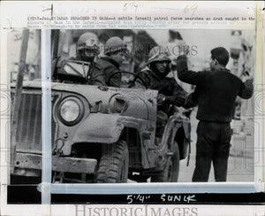 1970 Press Photo Israeli patrol men search an Arab caught in the streets of Gaza