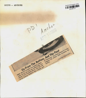 Ships - anchors. This huge wrought iron anchor, apparently lost by an early day sailing ship, was found in the Columbia River, near the site of the historic Hudson's Bay trading post at Vancouver. An Army Engineer's vessel snagged the anchor while dragging the bottom.