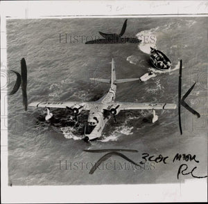 1953 Press Photo Group Albatross rescues Korean seaman in Okinawa's Buckner Bay
