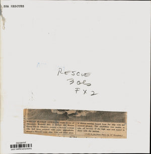 In rough waves of Okinawa's Buckner Bay, a second Air Rescue Group SA-16 Albatross rescues a Korean seaman who had been stricken with acute appendicitis aboard a Korean cargo ship. Life raft from plane is shown nearing launch from the ship with the seaman aboard. The amphibian was unable to take off because of the high seas and taxied to shore with the patient.