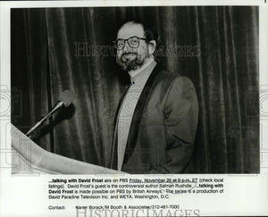 1993 Press Photo Author Salman Rushdie on "...talking with David Frost"