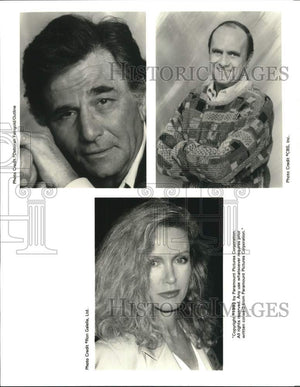 1993 Press Photo Actors Peter Falk, Bob Newhart, Donna Mills - pip14331
