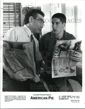 1999 Press Photo Jason Biggs and Eugene Levy star in "American Pie." - pip21754