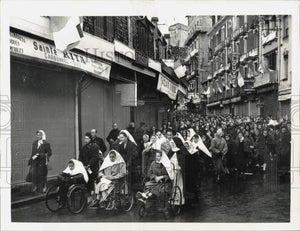 1958 Press Photo Procession of pilgrims to Shrine of Our Lady of Lourdes, France