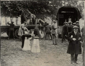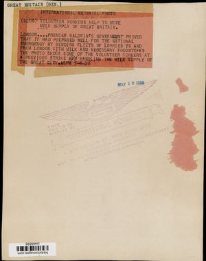 Great Britain (general): London - Premier Baldwin's government proved that it had prepared well for the national emergency by sending fleets of lorries to and from London with milk and necessary foodstuffs. The photo shows some of the volunteer workers at a previous strike handling the milk supply of the great city.