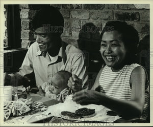 1975 Press Photo Vietnamese Refugees enjoy welcome meal - amra00042