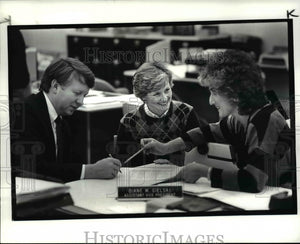 Jeanne & John Bernier getting a refinancing loan at 3rd Federal S&L Diane Gielski showing the couple where to sign.