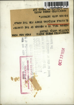 1934 Press Photo Herman Bell of New York Giants Pitcher
