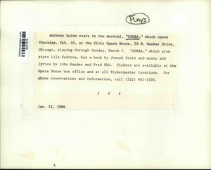 1986 Press Photo Actor Anthony Quinn in "Zorba" Musical - ftx01475