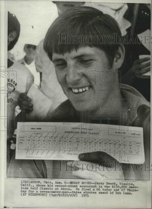 1971 Press Photo Jerry Heard Shows Second-Round Scorecard in Golf Tournament