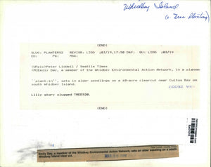 1989 Press Photo Emily Day Sets an Alder Seedling on South Whidbey Island